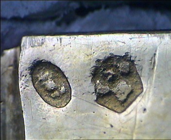 Punzones de ley de metal y de fabricante en la lengua del cierre. 25x