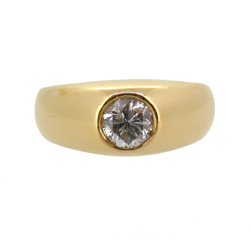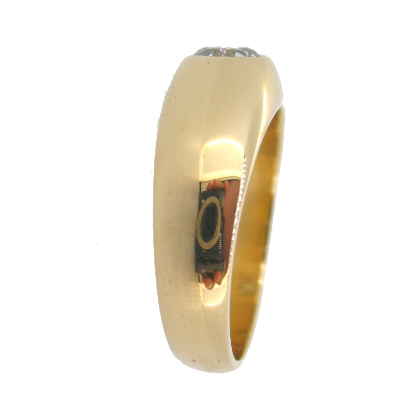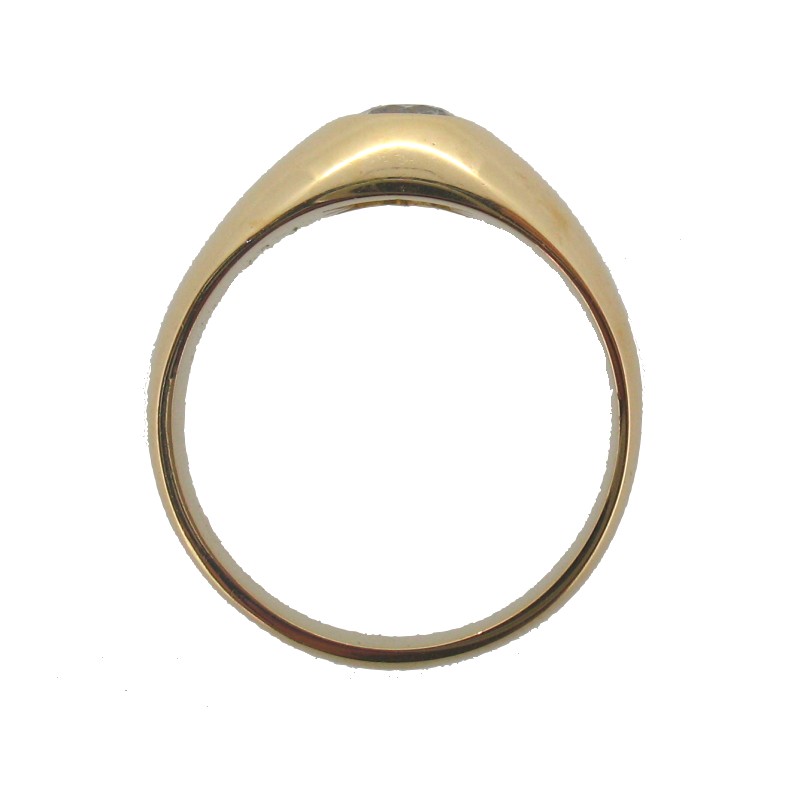 Sortija tipo "solitario" de brazo de media caña macizo en progresión de anchura y grosor. En su parte mas gruesa lleva un diamante engastado en chatón.
