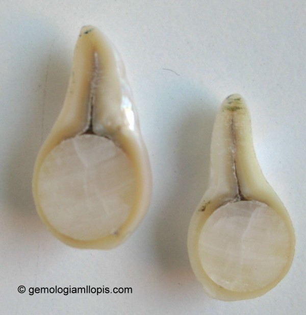Sección de una perla de agua dulce. Vemos que no llevan núcleo.