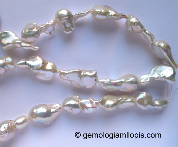 Perlas de agua dulce barrocas. Estas perlas sí ha crecido sobre un núcleo
