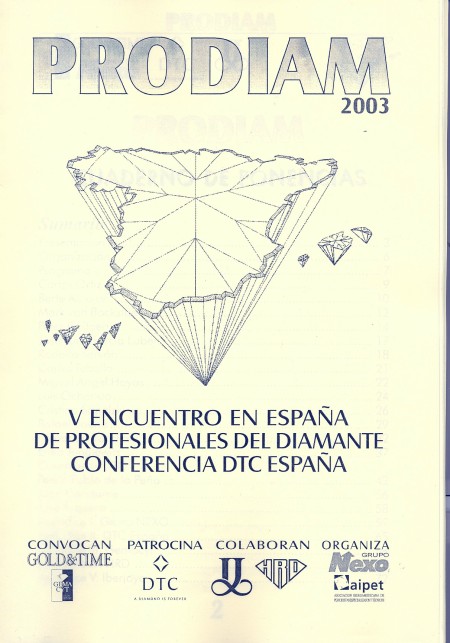 Notas | V encuentro en España de profesionales del diamante confetrencia DTC España. Cuaderno de ponencias presentadas por Carlos Ortiz, Berta Albajar. Mark van Bockstael. Peter Bostoen José Luis García Lubén |
