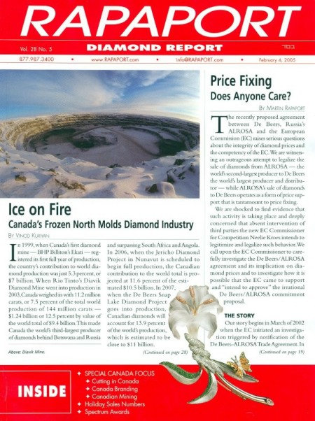 Notas | Canadá el tercer productor de diamantes del mundo con solo dos minas operando. Se prevee encontrar más kimberlitas en breve en los territorios del Norte como Ekati. |
