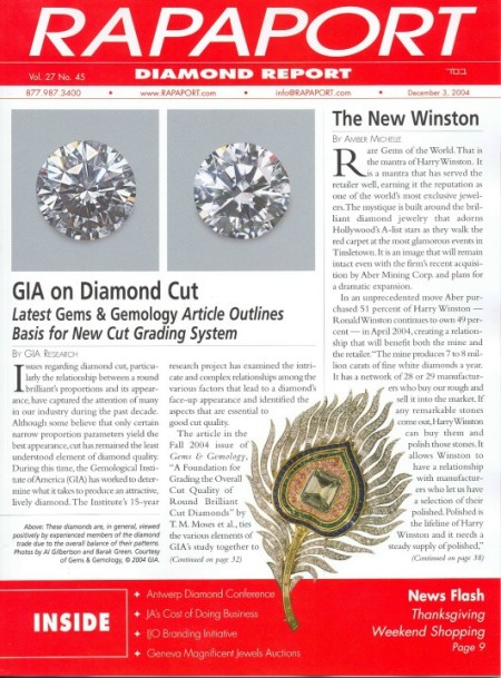 Notas | El GIA lanza un sistema de graduación de la talla. Proporciones, brillo, fuego, contraste, destellos, peso en relación al radio, durabilidad, simetría. Mercados del mundo de diamantes. |